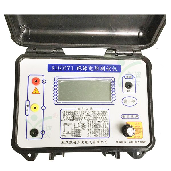 KD2671系列型智能數(shù)字絕緣電阻測試儀采用嵌入式工業(yè)單片機實時操作系統(tǒng),智能數(shù)字與數(shù)字段碼顯示較好結(jié)合,該系列表具有多種電壓輸出等級(250V、500V、1000V、2500V、5000V、10000V)、容量大、抗干擾強、模擬指針與數(shù)字同步顯示、交直流兩用、操作簡單、自動計算各種絕緣指標(biāo)(吸收比、極化指數(shù))、各種測量結(jié)果具有防掉電功能等特點。是測量大容量變壓器、互感器、發(fā)電機、高壓電動機、電力電容、電力電纜、避雷器等絕緣電阻的測試儀器。