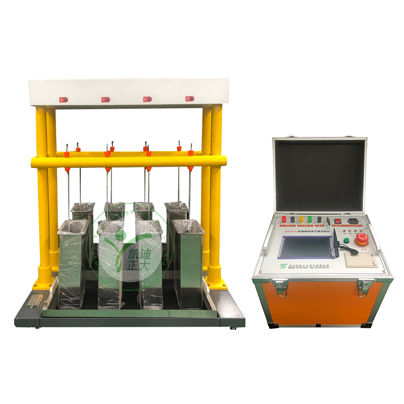 KDJS-6A智能絕緣手套耐壓試驗裝置是絕緣靴(手套)批量試驗的專用設備,有效地解決了以往不規則的測試方法,簡化了測試程序,提高了檢測速度,減輕了檢測強度,保障了檢測人員的安全,可靠地鑒別絕緣手套(靴)的泄漏電流,絕緣老化和工頻耐壓等參數,可同時檢測8只絕緣手套(靴)。