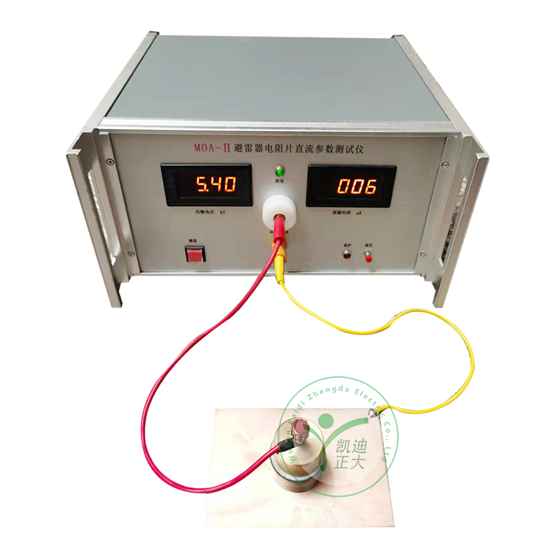 MOA-Ⅱ避雷器電阻片直流參數(shù)測試儀用于測量氧化鋅壓敏電阻的壓敏電壓(U1mA)和 0.75U1mA下的泄漏電流(Id)。